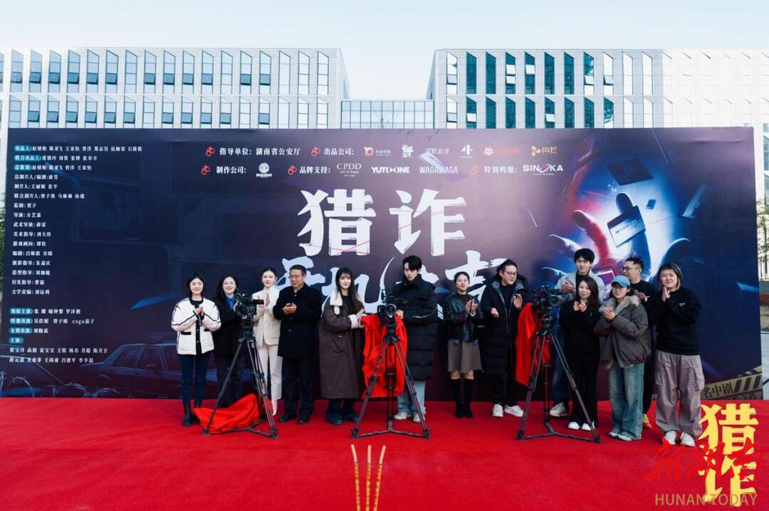 新湖南客户端12月28日讯(通讯员 王家怡)12月27日上午,由湖南省公安厅指导,湖南永朵文化传媒有限公司、天津长乎尔传媒有限公司、浙江华娱网络科技有限公司等联合出品的反诈题材项目《猎诈》,在长沙正式开机。监制贾子,总制片人康莹,导演方艺嘉,演员张耀、喻钟黎、罗泽楷等一众主创齐聚现场,亮相开机仪式。