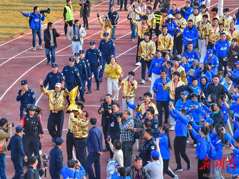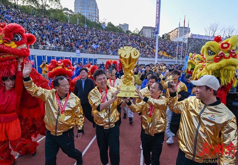 12月28日下午,湘超冠军永州队高举奖杯荣归主场。当天,永州市举行盛大庆祝活动,欢迎湘超永州队夺冠归来,全城共享胜利喜悦,共同见证荣光时刻。湖南日报全媒体记者 童迪 郭立亮 摄影报道