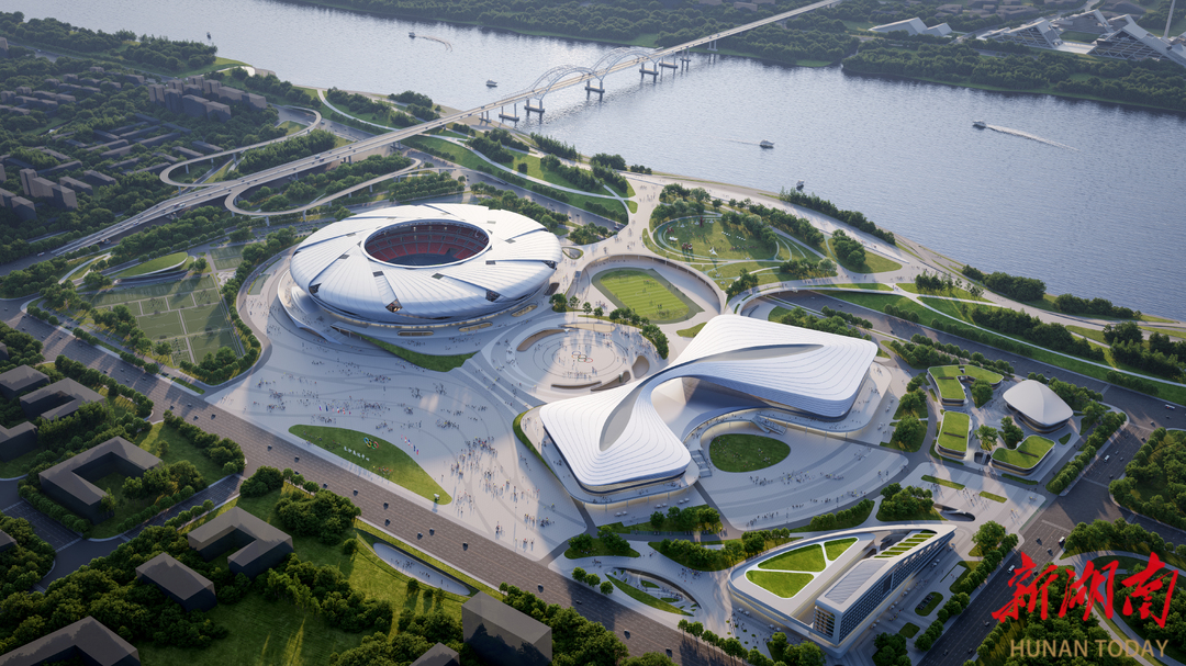 长沙奥体中心作为湖南省承办2029年全运会的核心场馆,总投资约68亿元、规划用地约1000亩、总建筑面积55万平方米。主要包含“一场两馆”及相关配套附属设施,其中“一场”为约6.5万座主体育场(融合图书馆、美术馆功能),“两馆”为约1.8万座综合体育馆和约4000座游泳跳水馆,相关配套附属设施相关配套附属设施包含媒体中心、配套服务用房、能源中心、停车场及充电桩等,它不仅是未来的体育新地标,更将成为激活南部融城片区、服务三市的重要引擎。