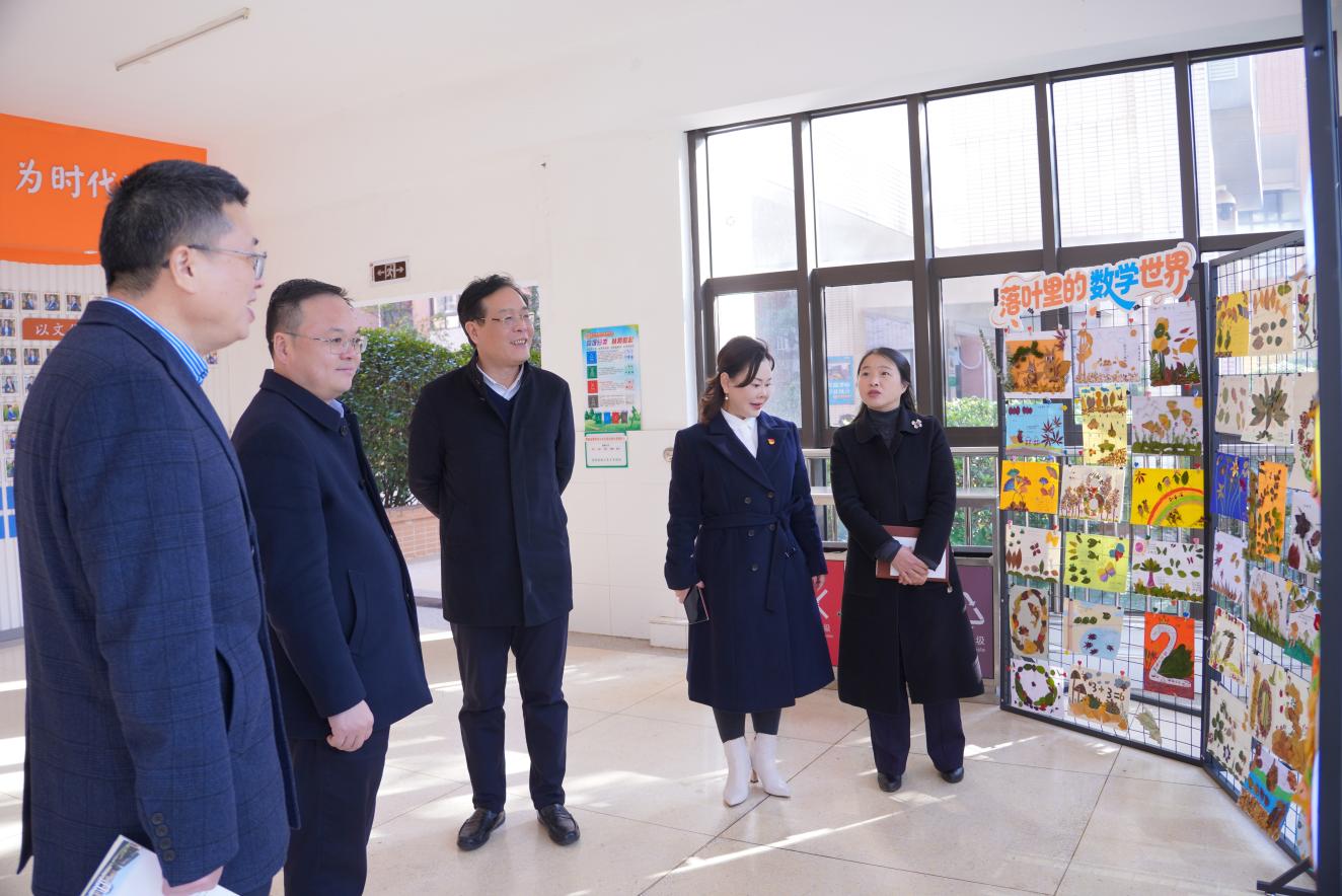 集团与会领导一行在承办学校负责人的陪同下,巡视了明德金鹰学校校园。从生物、地理、美术等学科丰富多彩的学生作品展示,到学校数字媒体文创中心呈现的前沿学生项目展板,学校浓厚的创新实践氛围与师生扎实的综合素养,给来宾们留下了深刻印象,直观感受了学校 “五育融合”的育人成果与蓬勃发展的生机活力。