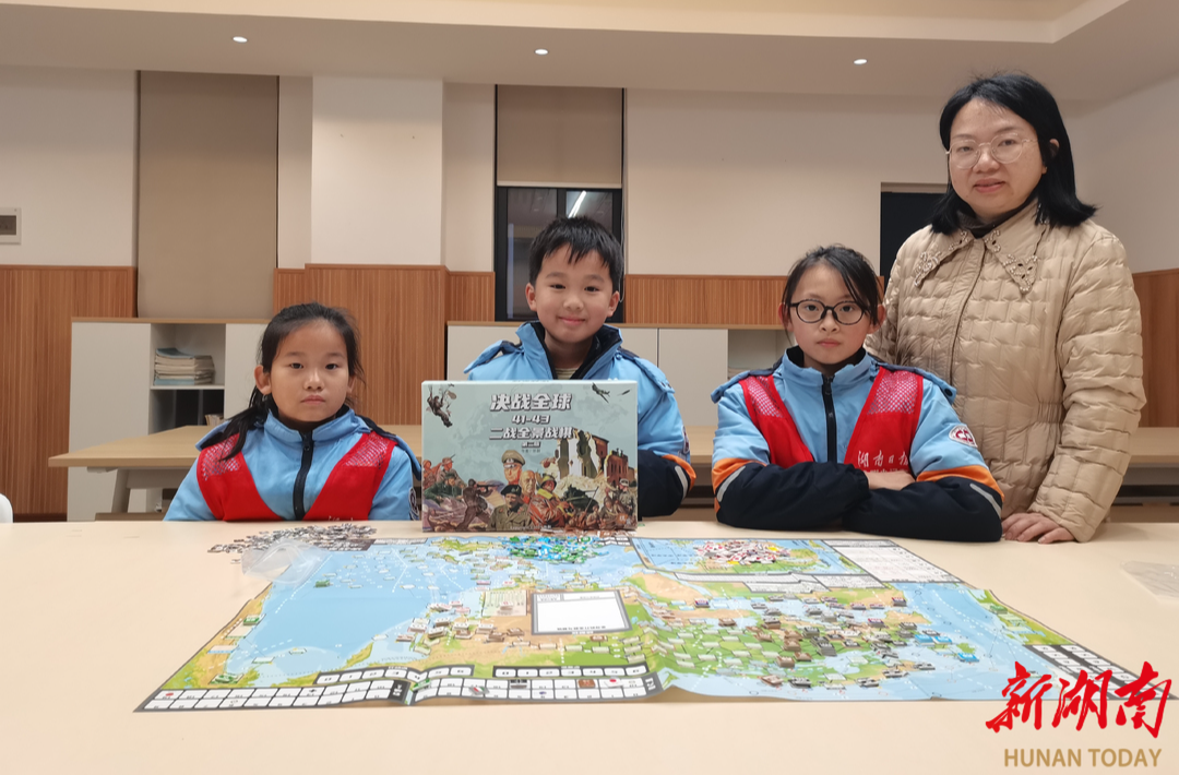 12月23日,在长沙市湘一史家坡学校的一间活动室里,三年级(4)班学生舒子藏正俯身于一张巨大的世界地图前。地图上不是寻常的山川河流,而是密布着代表不同兵团的微型棋子。他小心移动着它们,神情专注,仿佛一位运筹帷幄的小将军。