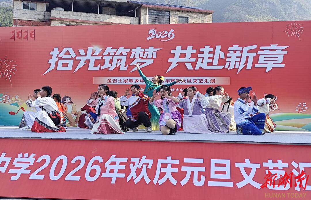 新湖南客户端12月29日讯(通讯员 彭巧)为丰富校园文化生活,展示师生艺术才华,传承优秀文化,近日,慈利县金岩土家族乡中学成功举办了2026年元旦文艺汇演暨“班班有歌声”活动。本次活动以“拾光筑梦·共赴新章”为主题,通过丰富多彩的文艺形式,凝聚校园力量,展现师生积极向上、团结奋进的精神风貌。