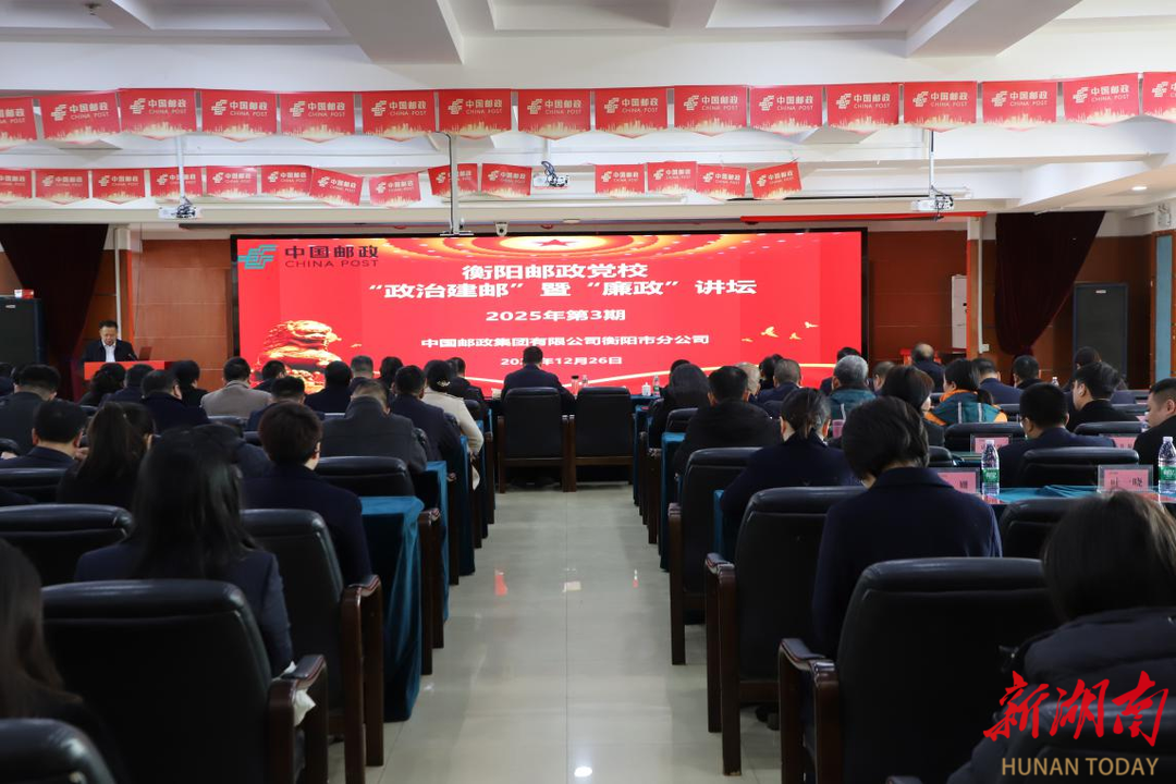 湖南日报·新湖南客户端12月29日讯 (记者 张子欣 通讯员 李无我)12月26日至27日,中共衡阳市邮政分公司党校2025“政治建邮”暨“廉政讲坛”开讲,该分公司党委班子成员、市本部中层干部、各县(市、区)分公司领导班子以及全市邮政部分党员干部参加集中学习。这次培训邀请业界翘楚、专家授课,旨在强有力推进衡阳邮政“政治建邮、文化兴邮、发展强邮”建设。