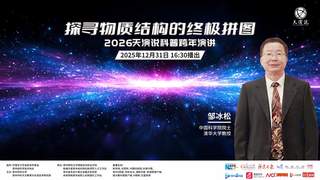 12月31日16点30分,2026天演说科普跨年演讲,新湖南客户端邀请您与中国科学院院士、清华大学教授邹冰松一起探寻物质结构的终极拼图。
