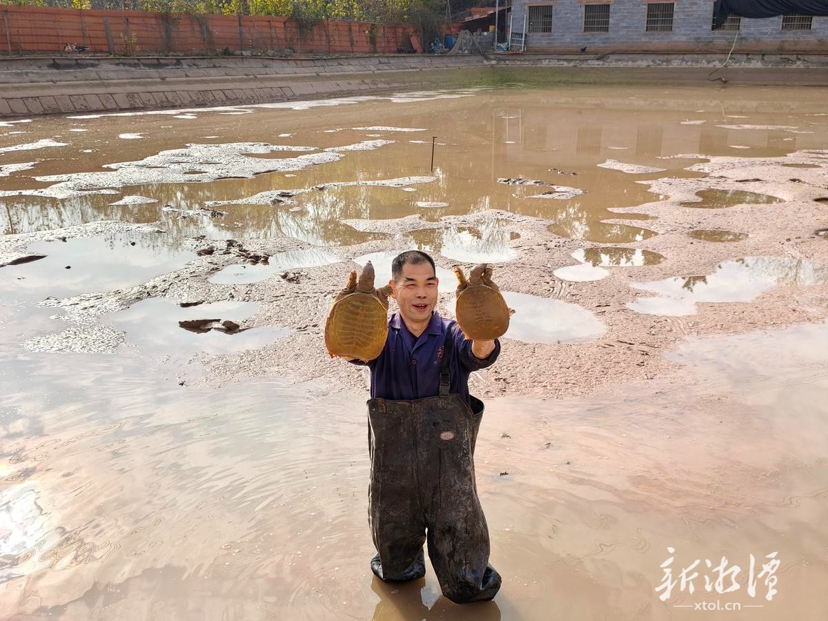 村民展示养殖的汉寿甲鱼。(陈锦 摄)