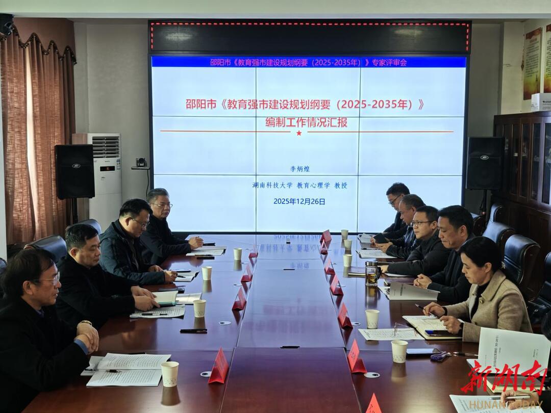科教新报·新湖南客户端讯(通讯员 张伟庆)12月26日,邵阳市教育局组织召开《邵阳市教育强市建设规划纲要(2025-2035年)》(以下简称《纲要》)专家评审会。来自湖南省教育科学研究院、湖南师范大学、湖南科技大学及本地文史、产业研究机构的专家学者和国家、省督学等齐聚一堂,对《纲要》进行了系统论证。专家组一致认为,《纲要》立足邵阳实际、彰显文化自信、路径清晰可行,具有鲜明的地方特色和前瞻视野。