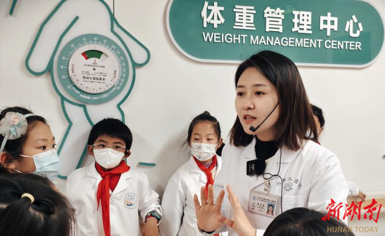 课程的设计并未止步于历史回顾,而是构建了一个从历史到现实、从知识到行动的立体学习场域。在中医科,耳穴模型和经络图成了直观的“活教材”,孩子们在医生指导下亲手寻找穴位、体验推拿,传统医学的“藏象理论”化为了指尖可感的温热与酸胀。在体重管理科,五彩的食物模型与BMI转盘,则将健康的科学原理转化为可操作的生活方案。