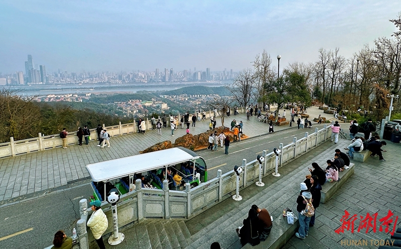 12月29日,市民、游客在长沙岳麓山景区参观。冬日暖阳下,山间的古亭楼阁、苍松翠柏相映成趣,构成一幅美丽的画卷,吸引众多游客前来登山赏景。湖南日报全媒体记者 徐行 摄