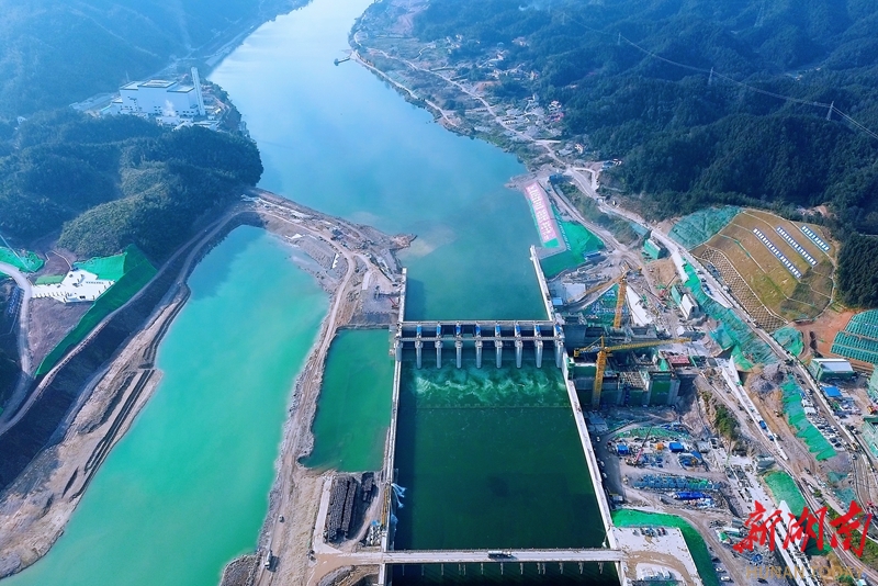 12月29日,安化县金塘冲水库枢纽工程施工现场,工人抢抓晴好天气加紧施工。该工程是湖南“十四五”水安全保障规划十大标志性工程之一,总装机容量200兆瓦,设计年发电量约6.47亿千瓦时,预计2027年全面竣工。郭公平 摄(湖南图片库)