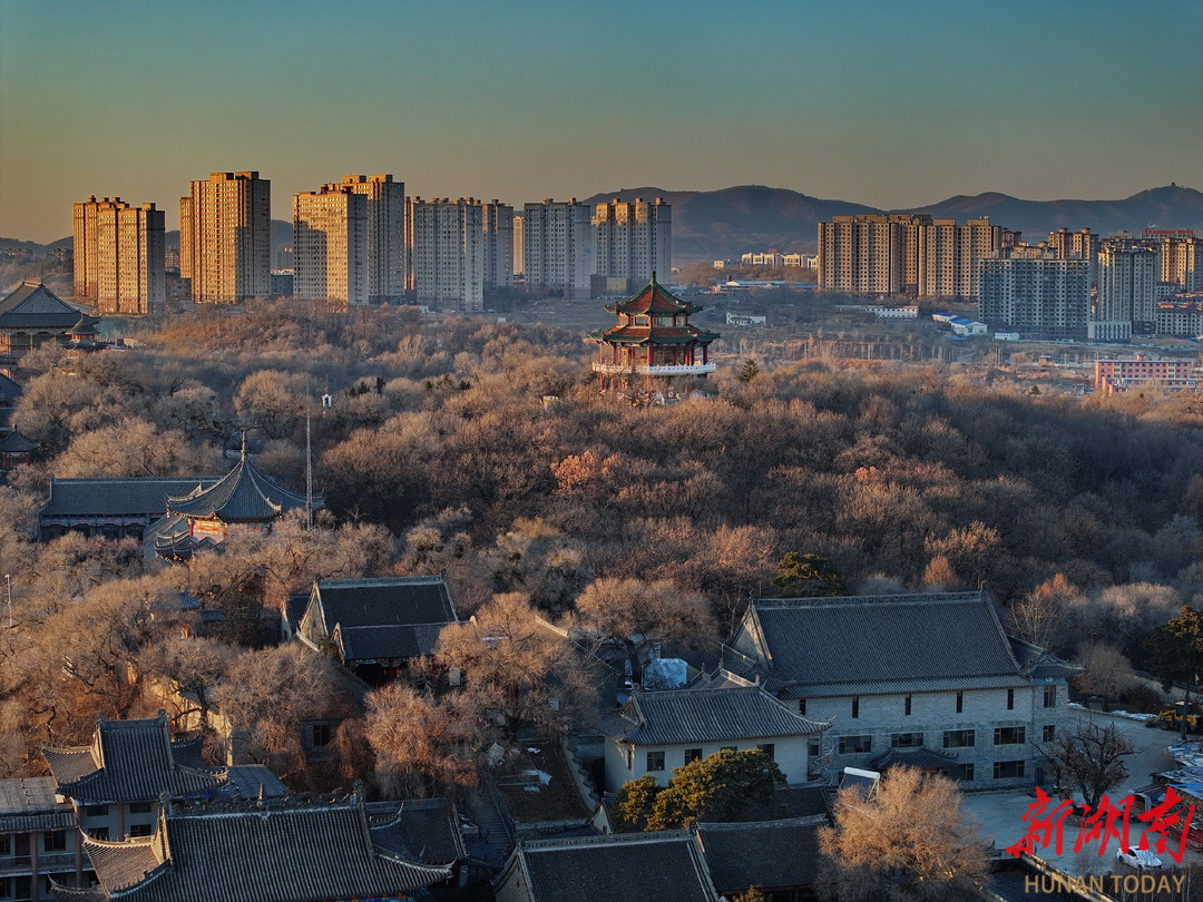 白山黑水抱江城,万里冰封接远空。初冬的吉林省吉林市,晴空之下,朔风卷起晶莹的雪沫,《楹联中国行》栏目组踏雪寻踪,寻访一副悬于北山玉皇阁万绿轩的名联:
