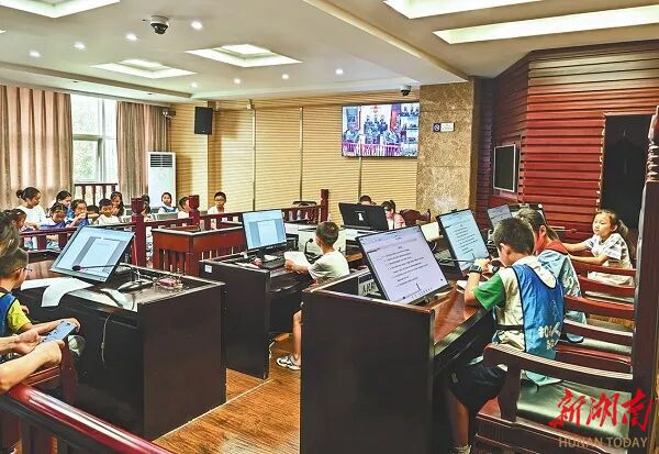 天元区法院邀请学生走进法院,指导学生体验模拟法庭