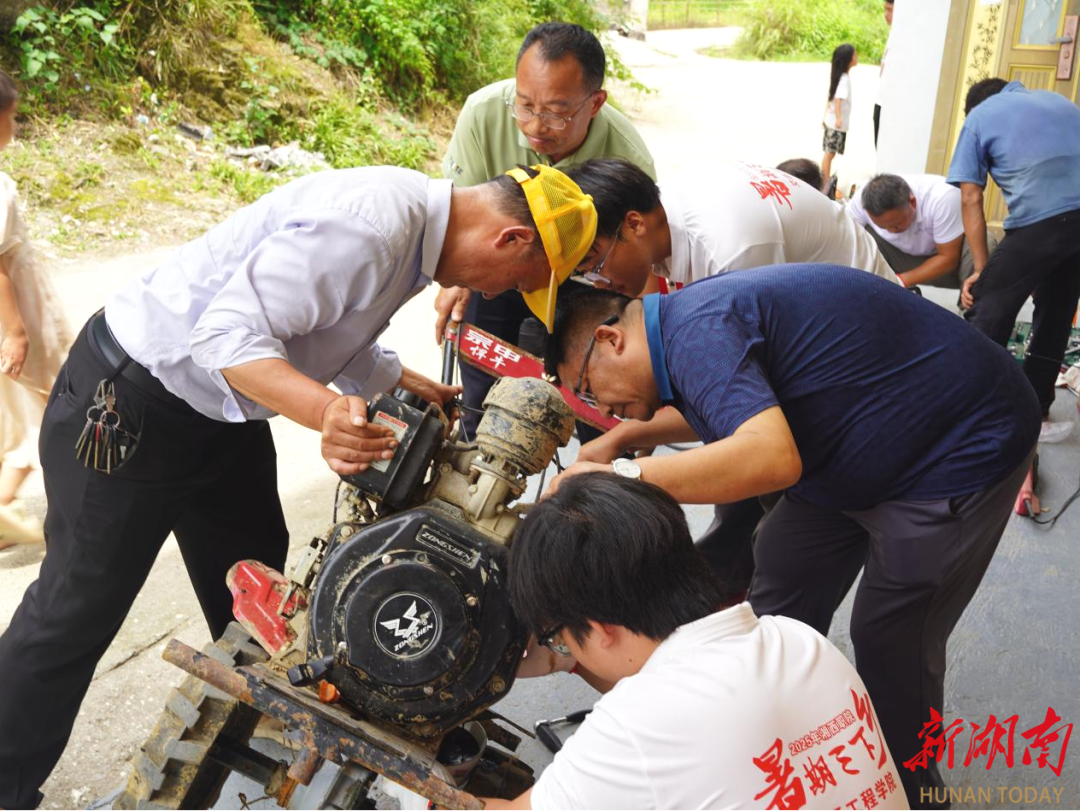 与此同时,交通工程学院农机科技先锋队师生头顶烈日,肩扛工具箱,用7天时间完成一场特殊的“暑假作业”——为村民检修维护农机设备10余台、维修水电20余户。