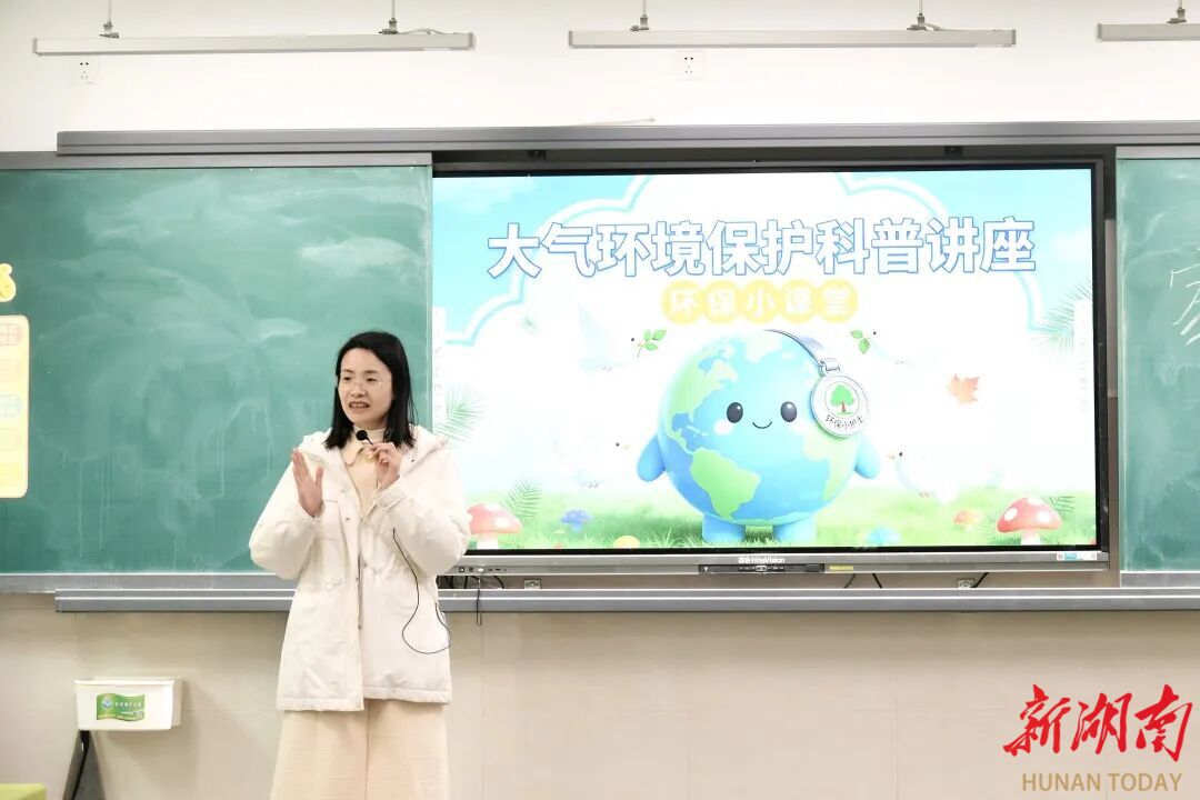 课堂上,郭卉化繁为简,以平实生动的语言构建起认知的阶梯。她聚焦空气“体检”怎么做、空气变脏的“罪魁祸首”、争做防护小能手、环保小卫士在行动四个方面,从大家每日关心的空气质量指数(AQI)说起,为大家解读了其背后PM2.5、臭氧等关键监测指标的科学含义以及大气环境监测的方法和内容,结合本地大气环境监测的实例与长期数据趋势,向同学们清晰地揭示了大气污染的主要来源、传输过程以及对人体健康、生态环境产生的深远影响。