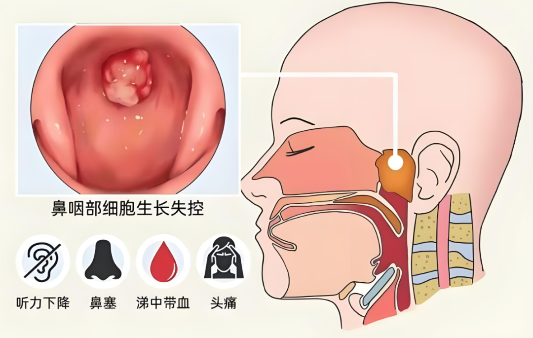 简单来说,我们的鼻子和咽喉的交界处,有一个叫做“鼻咽”的隐蔽结构。你可以把它想象成一个“小阁楼”,位于鼻腔后方、咽喉上方、颅底下方,发生在这个“小阁楼”黏膜上的恶性肿瘤,就是鼻咽癌。鼻咽癌之所以危险,正是因为它位置隐蔽,早期症状不典型,很容易被忽视或误诊为普通炎症。