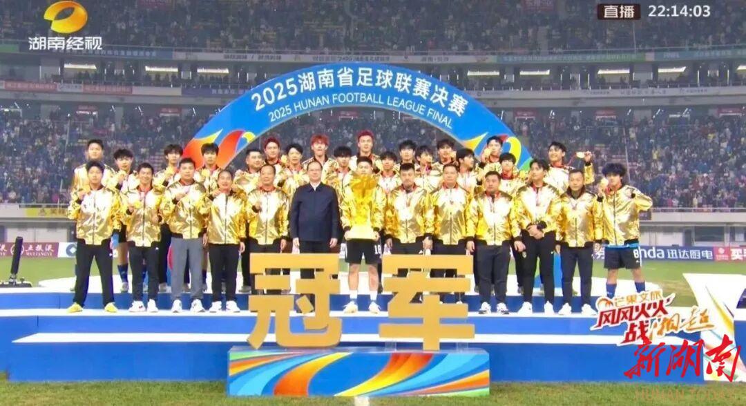 与此同时,数百公里外的永州市体育场化身“第二现场”,灯火璀璨、呐喊如潮,数万市民通过大屏共享夺冠时刻,沉浸式感受足球的热血与城市的荣光。