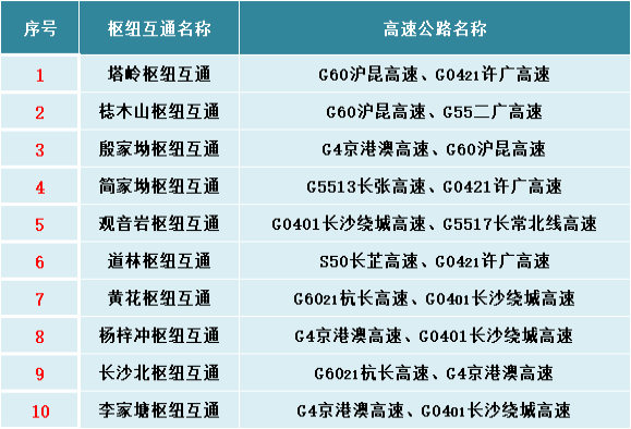 (三)大流量枢纽互通(10个)