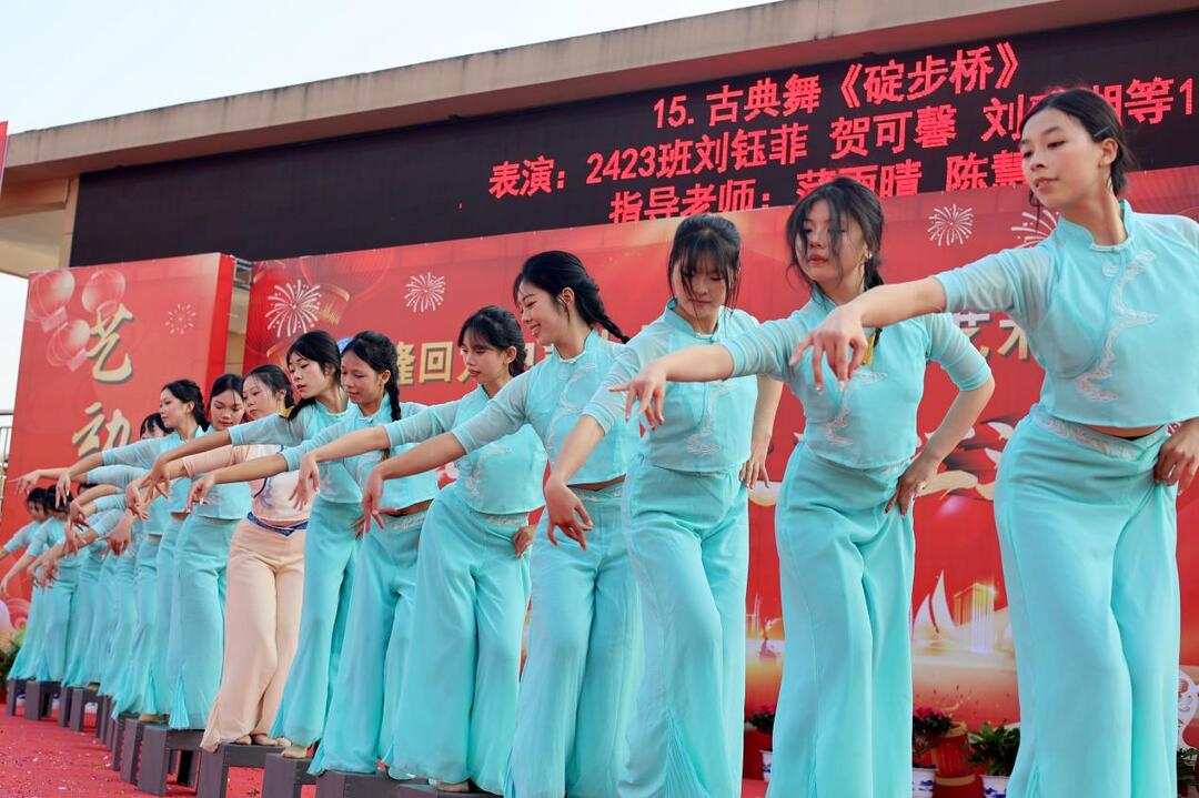 第一篇章聚焦青春本色与梦想启航。开场舞《春风十万里》以磅礴大气的编排和流畅优美的舞姿,瞬间点燃全场热情;唱跳歌曲《爱的主打歌》活力四射,尽显少年朝气;情景剧《尤梦・有梦》真挚动人,传递追梦力量;创意节目《梦境漫游》融合多元艺术元素,展现学生们的奇思妙想;小组唱《喀秋莎》《龙船调》等重温经典旋律,唤起全场共鸣。青年教师带来的舞蹈三重奏,更展现出师者在课堂之外的别样风采。