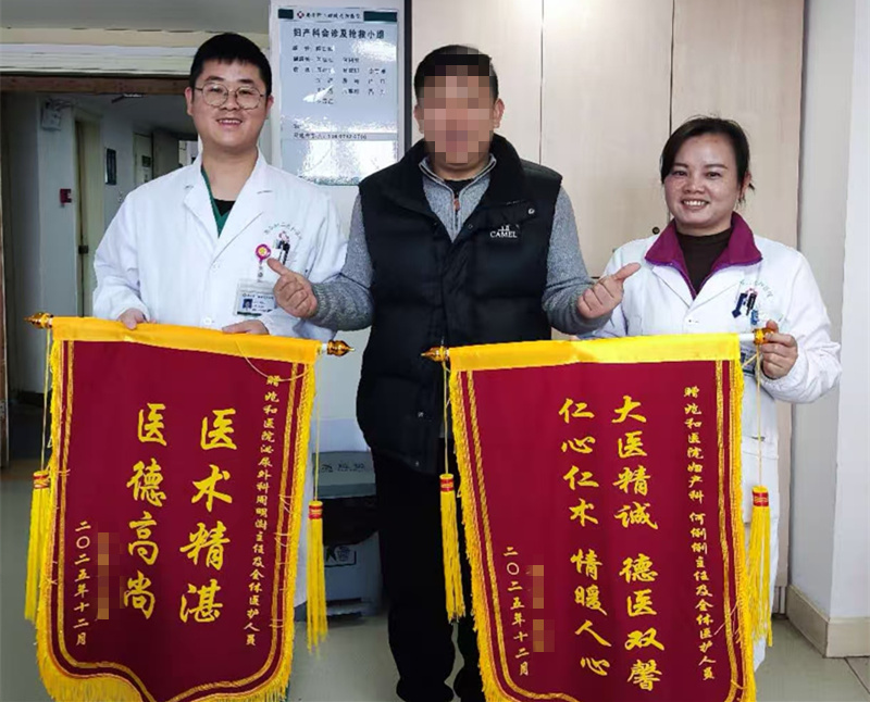 南华附二醴陵兆和医院多学科协作迅速启动。评估、决策、手术——急诊局麻下右侧输尿管置管术顺利完成。疼痛立止,危机解除。几天后,患者家属送来一面锦旗道出了所有感谢。