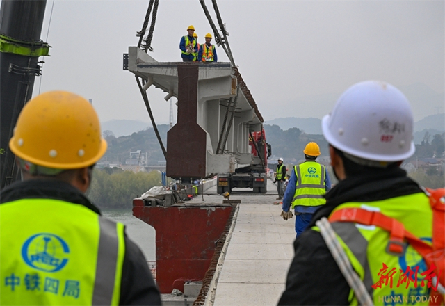 On December 29, construction workers were busy erecting T-girders in Shimen County. With the precise installation of the last 32-meter-long, 140-tonne-weight simply-supported T-girder, all 22 T-girders of the Lishui Grand Bridge were successfully installed on the same day. The bridge is part of the 2×66 MW capacity expansion and upgrading project for a Shaanxi coal transport dedicated railway in Shimen County, undertaken by the China Railway No. 4 Engineering Group Co., Ltd. This marked that the railway capacity expansion and upgrading project has been fully completed.