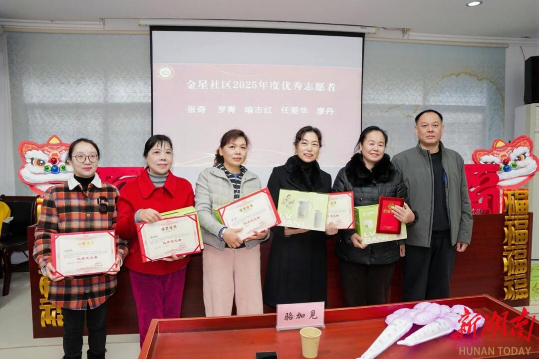 12月30日上午,湖南湘江新区金星社区党群服务中心内暖意融融、掌声阵阵,社区“金彩生活·骏马迎新程”2025年度优秀志愿者、居民代表、红色先锋表彰大会暨邻里团圆活动在此举行。活动通过表彰先进、分享经验、共迎新年,不仅营造了团结奋进的社区氛围,更集中展现了金星社区以党建为引领、以居民为主体、以共建为助力的基层治理新格局。