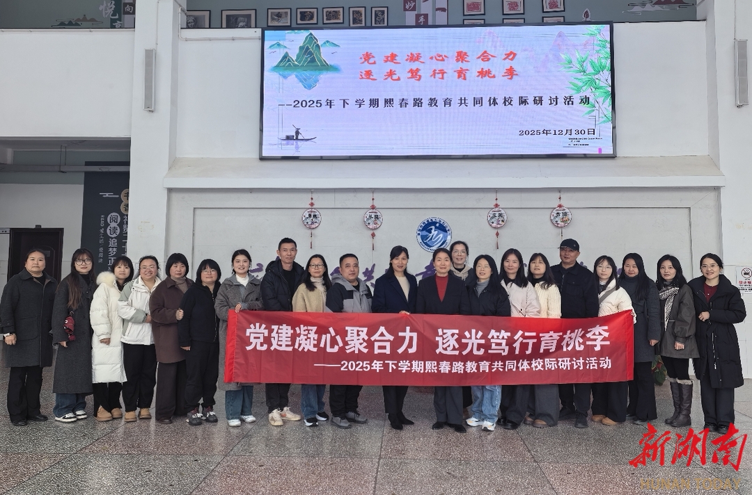科教新报·新湖南客户端讯(通讯员 刘玉锦)12月30日,湘潭市雨湖区熙春路教育共同体校际研讨活动在九华杉山学校顺利开展。共同体各成员校领导、授课教师及学科教师齐聚一堂,共赴这场教学研讨的盛宴。