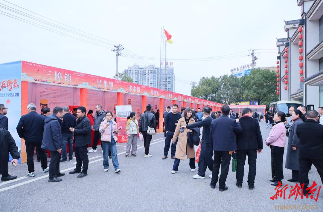 思想碰撞之外,更具烟火气的展示也在现场同步展开。状元人家前坪的“一乡一品”食材展销区,成为本次活动最接地气的风景线。展销现场,各乡镇纷纷亮出自己的“拿手好菜”,金黄璀璨的三樟黄贡椒、醇香透亮的衡东山茶油、手工精酿的米酒、咸香地道的石湾香干、油润咸香的霞流咸鸭蛋……各类特色食材琳琅满目,散发纯正的乡土气息。农户现场讲解,采购商驻足交流,现场气氛热烈。不少前来观展的游客和市民表示:“以前只知道衡东土菜好吃,今天看到这么多原生态的好食材,才知道好味道的源头在这里。