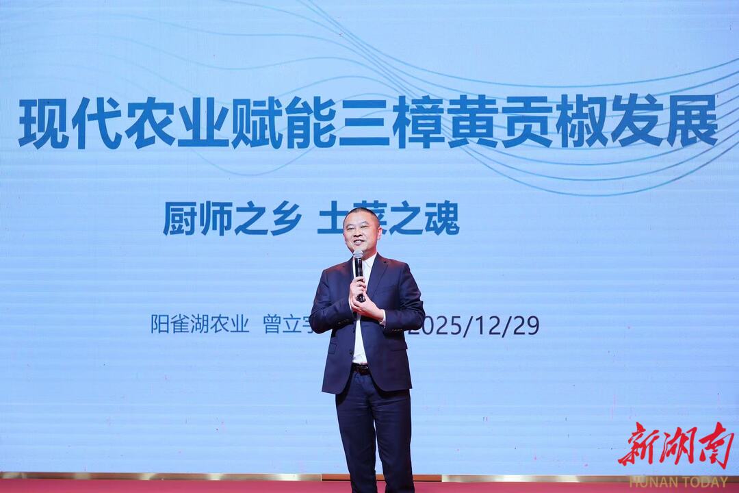 紧随其后,多位行业实践者从不同维度分享了各自的观点与规划。在产业实践与规划层面,衡东县土菜发展服务中心主任夏建辉系统阐述了土菜产业的深厚底蕴与广阔前景,强调传承“鲜、辣、美、简”独特风味的衡东土菜,未来将坚定不移地走标准化、品牌化、健康化之路,致力打造百亿级产业集群。作为与衡东县深度合作的现代农业企业代表,阳雀湖农业创始人曾立宇基于其集团推动樟树港辣椒产业发展的实践提出,要将“衡东黄贡椒”其打造成世界知名品牌,以现代农业的模式实现“黄贡椒 + 土菜” 双品牌联动与发展。