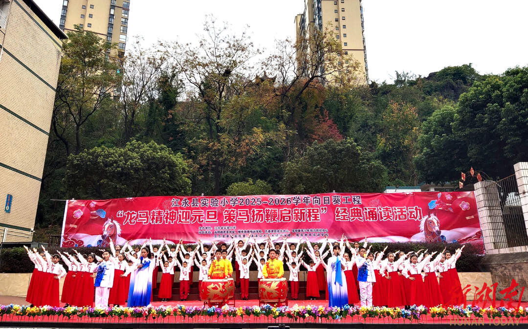 科教新报·新湖南客户端讯(通讯员 周甘辉 蒋权座)欢声笑语辞旧岁,喜气洋洋迎新年。12月30日,江永县实验小学举办“龙马精神迎元旦”主题庆祝活动,全体师生欢聚一堂,共赴这场洋溢着童真与活力的节日盛宴。