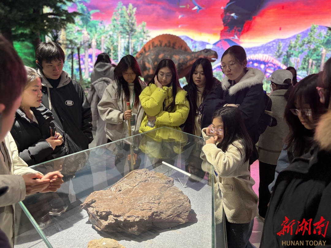 在专业讲解员的双语导览下,学生们驻足展柜前,用手指轻触说明牌,目光聚焦在波纹状砂岩上。“看,这些波纹!真的是古代海浪留下的痕迹吗?”学生安娜用清晰的中文提问。她的问题引发一阵热烈讨论。当得知眼前巍峨的峰林曾沉睡于古老海底时,师生们纷纷露出难以置信的神情。“这让我想起了家乡的潘塔纳尔湿地,”带队老师卡洛斯感慨道,“虽然地貌完全不同,但同样能感受到自然跨越时间的伟大力量。”