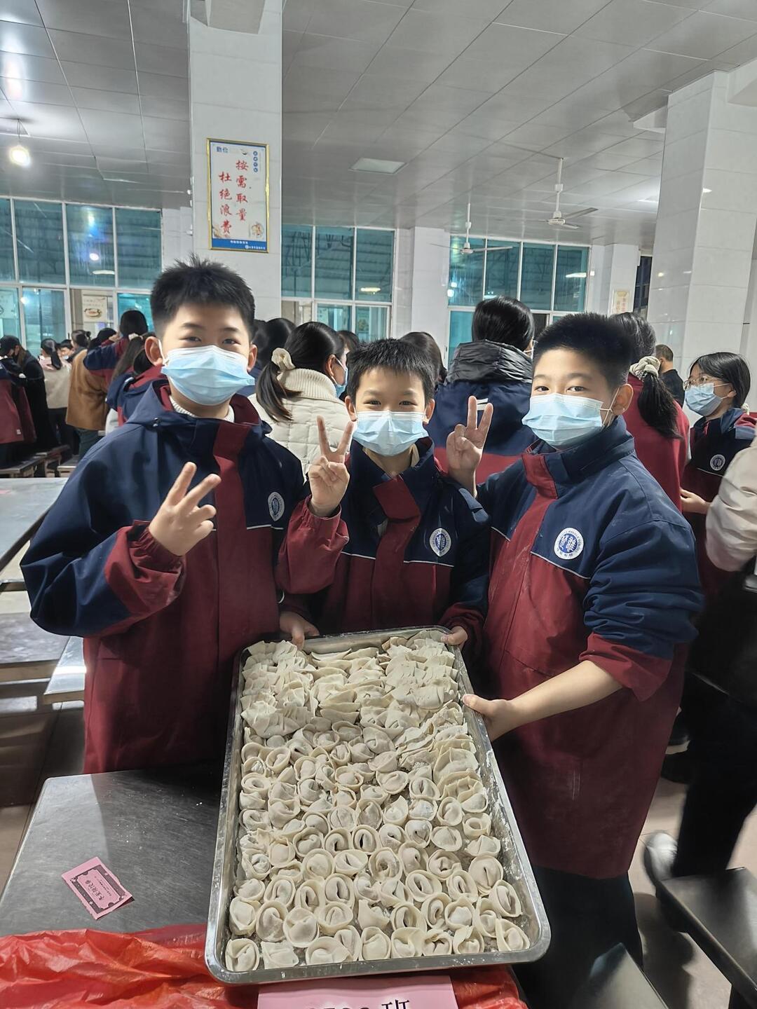 多数学生是首次尝试包饺子,起初难免手忙脚乱,包出的饺子形态各异、馅料外露,但在家长和教师的鼓励指导下,很快掌握了技巧,动作渐趋娴熟。当一盘盘饱含创意的水饺陆续出锅,学生们端起热气腾腾的餐盘,第一时间递到老师和家长手中,一句句“老师您先吃”“阿姨辛苦了”的暖心话语,让现场暖意倍增。活动中穿插的冬至知识抢答环节更是将氛围推向高潮,“冬至是不是北半球白天最短的一天?”“除了饺子汤圆,还有哪些地方冬至吃馄饨?”等问题抛出后,学生们踊跃举手、积极作答,在欢声笑语中深化了对传统节日知识的理解与记忆。