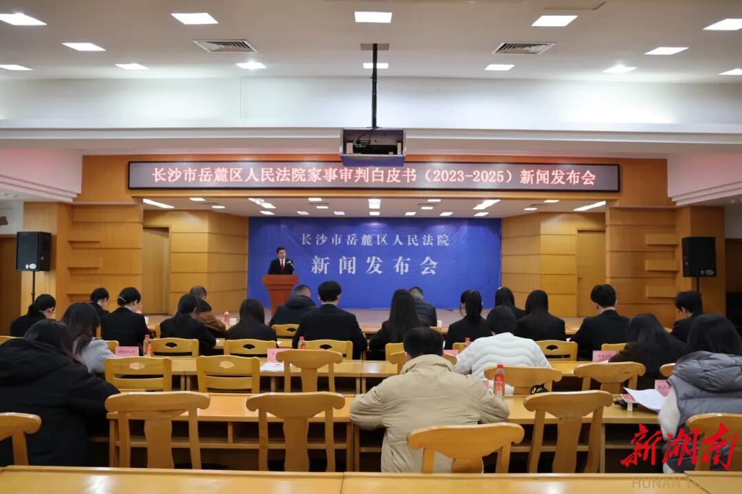 湖南法治报·新湖南客户端讯(全媒体记者 曾雨田 通讯员 贺艺蕾)12月30日,长沙市岳麓区人民法院召开新闻发布会,发布《家事审判白皮书(2023—2025)》。3年来,岳麓区法院共受理各类家事案件2911件,审结2640件,调解率占比53.37%,最大限度实现了“案结事了人和”。