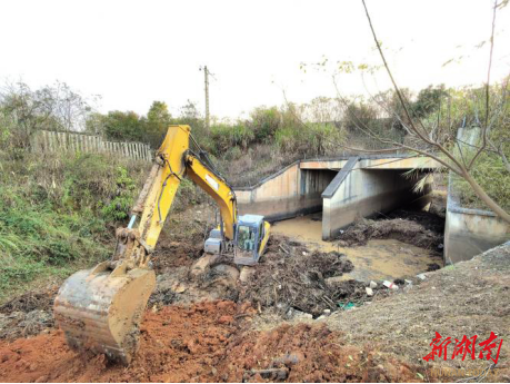 湖南日报·新湖南客户端12月30日讯(通讯员 刘群林 肖小平)冬日暖阳。位于衡南县龙溪桥灌区的渠道旁,身着迷彩服、工装的工作人员手持铁锹、镰刀,抡着锄头、铁锹,砍除灌木杂草,疏浚堵塞涵洞,平整渠道边坡。几台挖掘机将淤积泥土和杂物连根挖起,装入运输车辆,及时转运。