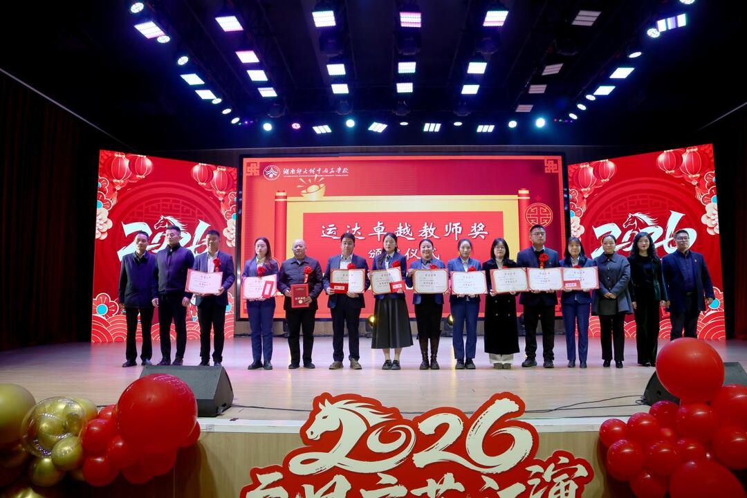 学校党总支书记刘灵松发表了题为《乘势而上启新程 笃行致远谱华章》的新年致辞。随后,现场举行了“运达奖教基金”颁奖典礼。据悉,湖南运达实业集团有限公司特别设立了奖教基金,鼓励学校合作办学以来的教育教学成果,激励全体教职工再立新功。湖南师大附中党委委员、副校长廖强,雨花区高桥街道党工委书记石华,雨花区教育局党委委员、副书记许惠芝,湖南运达实业集团有限公司副总裁李娜等嘉宾共同为获奖教师代表颁奖。