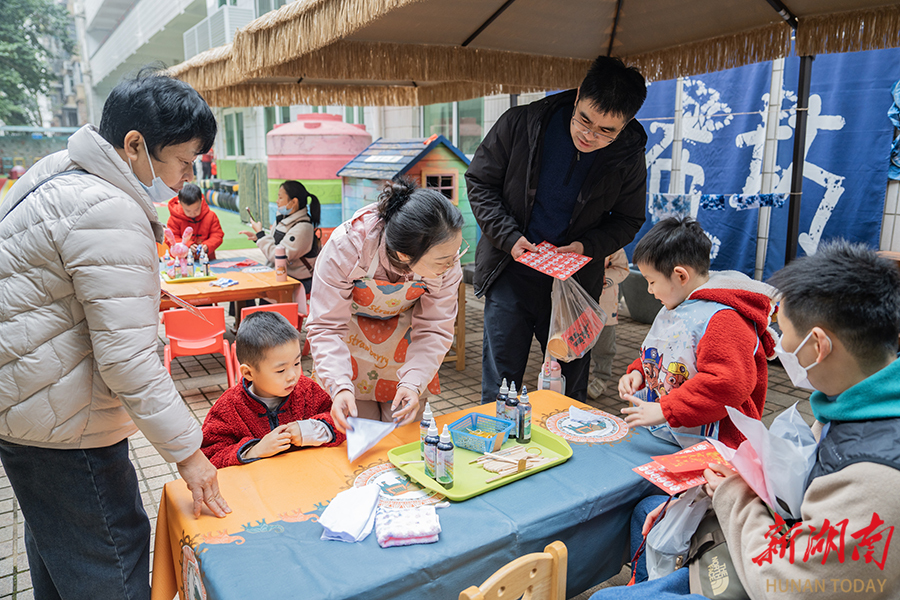 12月30日,长沙师范学院附属第一幼儿园举行“欢乐中国集”暨迎新年亲子游园会。活动现场设置了非遗展演、趣味游戏等丰富多彩的沉浸式体验项目,让孩子们在欢乐氛围中寻味中国年。湖南日报全媒体记者 李健 通讯员 梁文娟 摄影报道