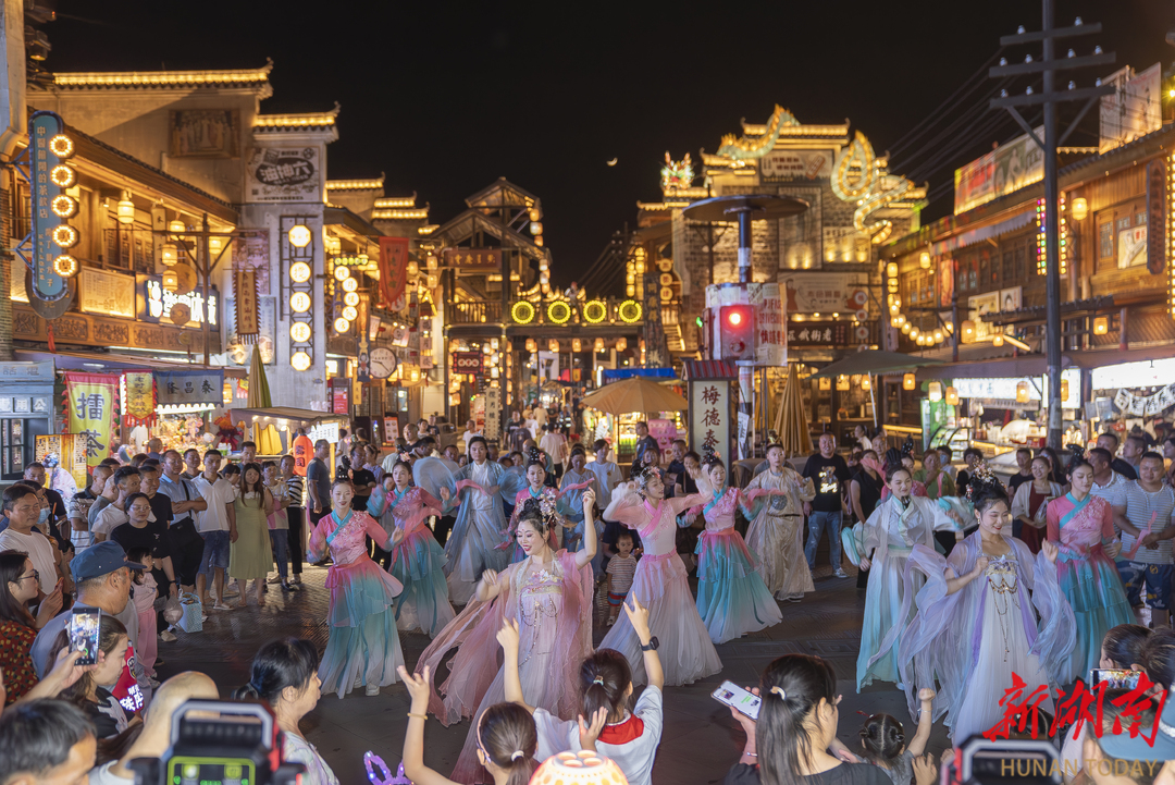 2025年5月29日晚,益阳明清古巷,文艺展演吸引游客驻足观看。 湖南日报全媒体记者 童臻熙 摄