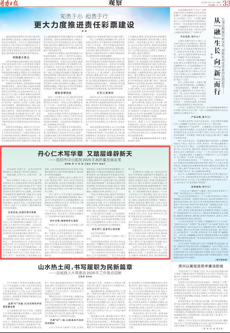 枝叶关情的日子涌上心头,写就了署名邵阳市中心医院的故事:成功实施邵阳地区首例“经心尖途径TAVR手术”、接受国家科技重大专项——移动卒中救治关键技术研究项目邵阳分中心授牌、 老年神经外科领域形成“精准诊断-智能手术-快速康复-人文照护”全流程服务体系……在这里,他们与邵阳的脉搏同频共振,与这片热辣滚烫的土地同甘共苦,与高质量发展同心勠力,写就了中心医院“又踏层峰辟新天”的宏伟篇章。