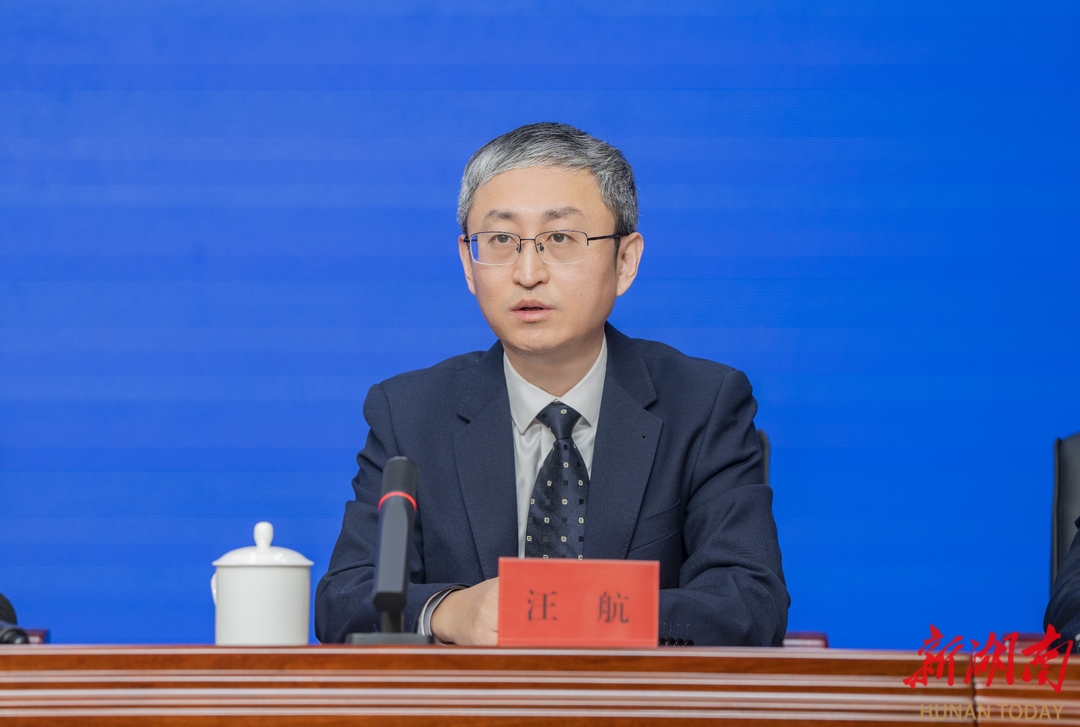 (省委组织部副部长、省委人才办主任汪航回答记者提问。湖南日报全媒体记者 李健 摄)