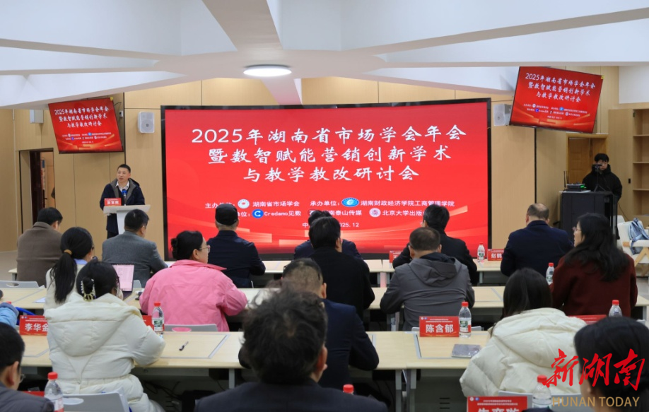 12月27日,2025年湖南省市场学会年会暨“数智赋能营销创新”学术与教学教改研讨会在湖南财政经济学院举行。来自全国20余所高校、科研机构及企事业单位的近百名专家学者、教师与学生代表参会,共同探讨数智时代市场营销的学术前沿与教学创新方向。校党委书记易棉阳出席会议并致辞,副校长赵鹤平主持开幕式。