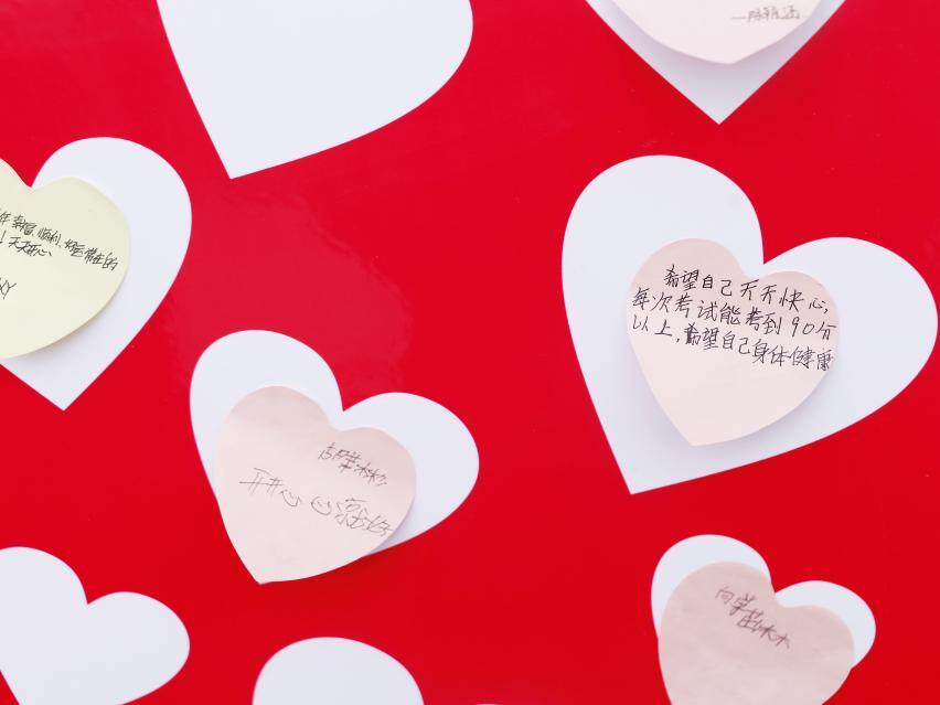 活动中,学生们还认真书写“心语卡片”,记录对自我的期许与对同伴的鼓励,校园里处处洋溢着真挚的祝福与积极向上的浓厚氛围。