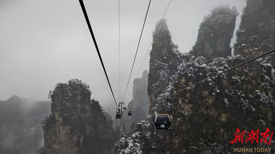 12月31日,张家界国家森林公园迎来今冬首场降雪,天子山景区银装素裹。吴勇兵摄