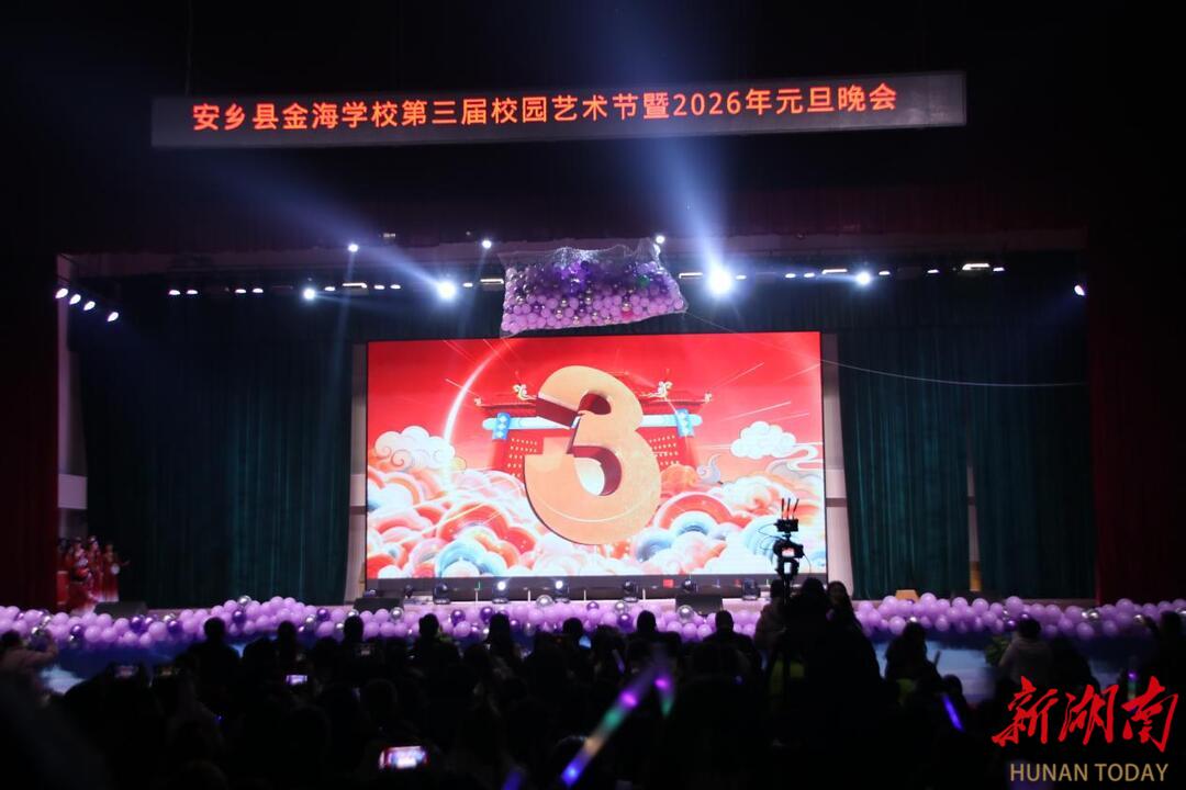 新湖南客户端12月31日讯(通讯员 刘文雨)12月29日晚,安乡县金海学校第三届校园艺术节暨元旦迎新晚会圆满落幕。据统计,此次晚会线上线下同步呈现,观看总人次突破五万,充分展现了师生广泛的参与热情与活动影响力。