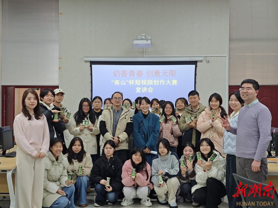 湖南日报·新湖南客户端12月31日讯(通讯员 陈映薇 毛俊)“实战练兵 + 奖金证书 + 企业推广”,这样的学习机会实属难得!12月29日下午,长沙商贸旅游职业技术学院励志楼103教室热闹非凡,该校与湖南南山牧业联合主办的 “奶香青春 创意无限” 短视频创作大赛宣讲会在此启幕。同学们围绕横竖屏规范、AI 制作边界、传播有效性等问题踊跃发问,校企双方现场答疑,一场创意与产业碰撞的实践盛宴正式开锣。