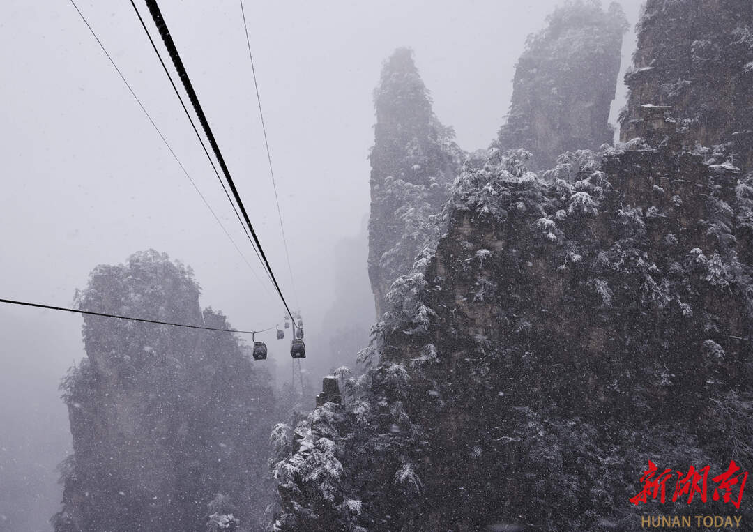 2025年12月31日,张家界国家森林公园,游客乘坐天子山索道观赏雪景。当天,纷飞的大雪将景区装扮得银装素裹,形成壮观的跨年雪景,吸引着各地游客纷至沓来。吴勇兵 摄(湖南图片库)
