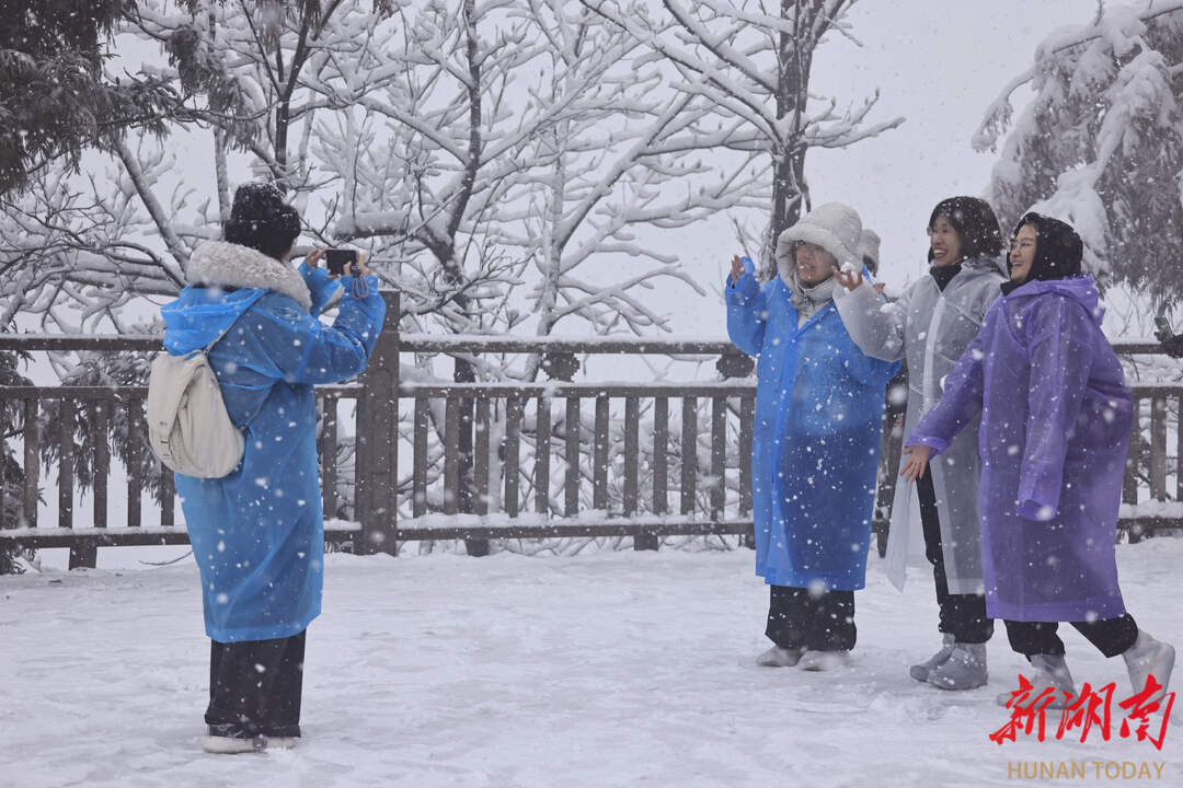 2025年12月31日,游客在张家界国家森林公园赏雪游玩。当天,纷飞的大雪将景区装扮得银装素裹,形成壮观的跨年雪景,吸引着各地游客纷至沓来。吴勇兵 摄(湖南图片库)
