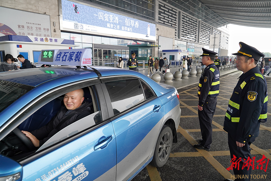 12月31日,长沙市交通运输综合行政执法支队执法人员在高铁长沙南站对营运车辆实施严格检查。元旦假期,该支队以出租车、网约车通道为重点区域增派力量,并在“三站一场”、热门商圈、重要路段加大执法力度。通过执行24小时值班制度、储备应急处突力量,全力保障节日期间交通运输市场安全有序,守护群众平安顺畅出行。湖南日报全媒体记者 徐行 通讯员 陈果 摄影报道