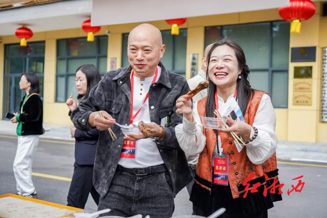 2025年10月29日,永顺县的老街里,烟火气正浓。两位佩戴嘉宾证的湘商,端着当地小吃,笑得开怀。身后是热闹的市井,眼前是地道的家乡味。这不止是一次考察,更像是一场久别重逢。舌尖尝到的是风味,心底泛起的,是乡情。