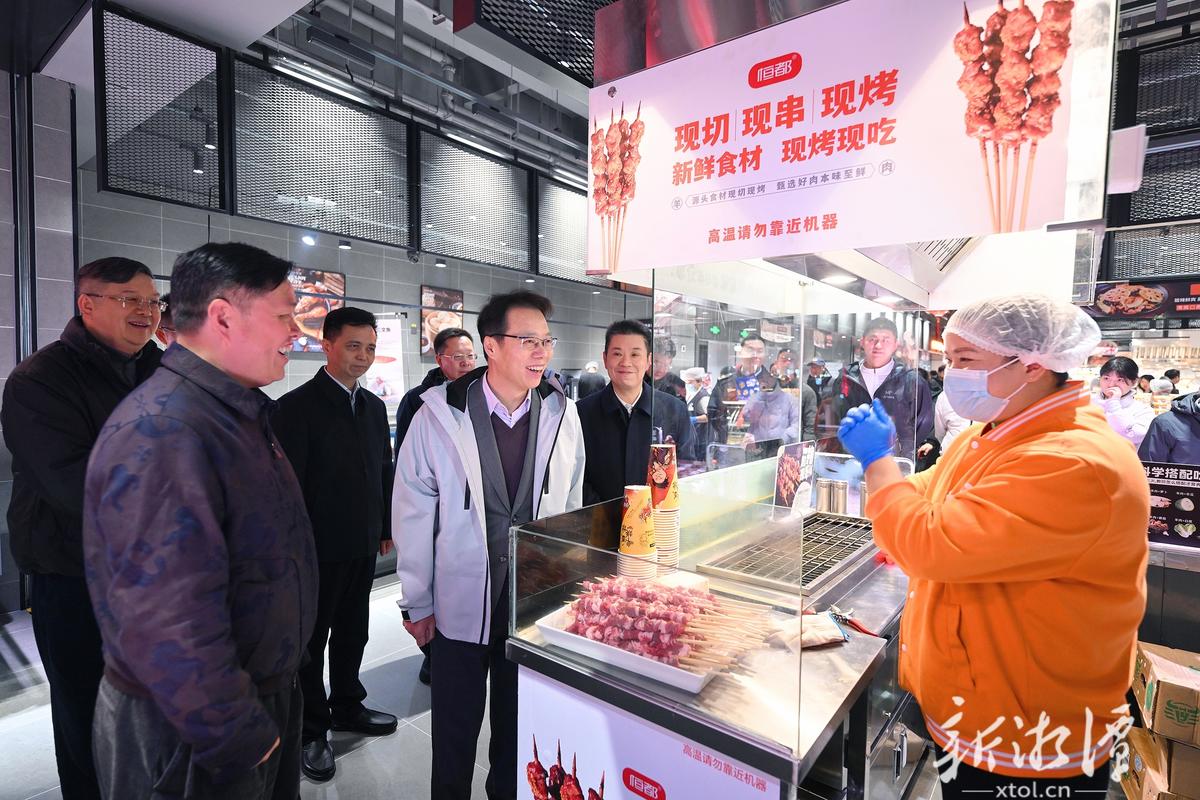 位于岳塘区的步步高超市湘潭东方红店内,商品丰富、人流如织,洋溢着浓厚的节日氛围。胡贺波走进超市生鲜果蔬、糕点面食、熟食加工等区域,仔细察看商品质量、价格标识和环境卫生状况,与企业负责人及工作人员深入交流,详细了解市场经营、商品销售、质量管控等情况,并实地检查消防设施配备与运行维护工作。