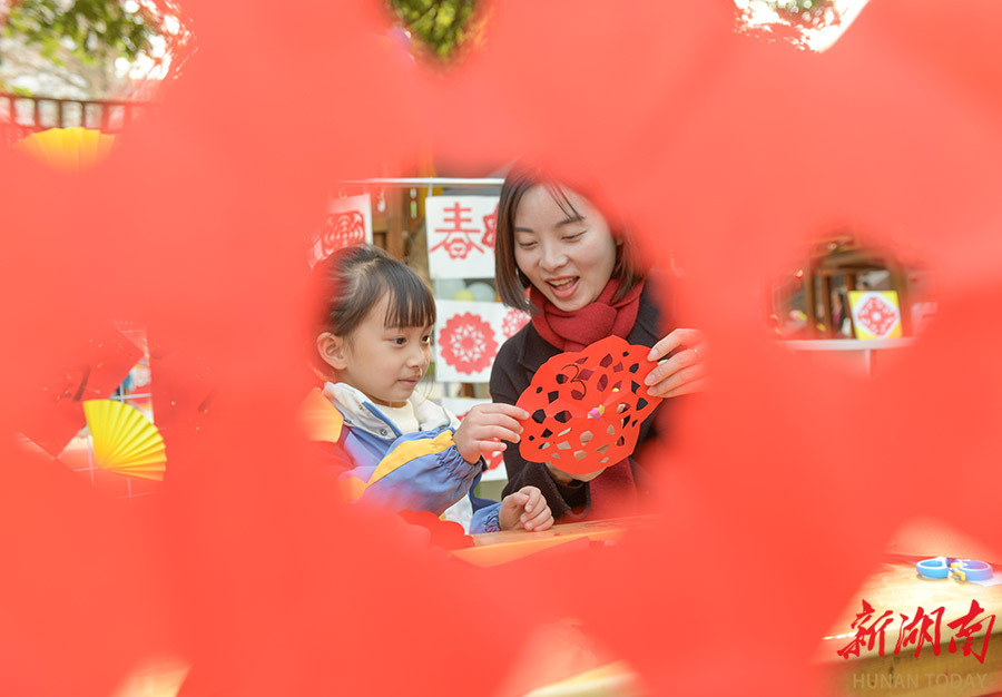 2025年12月31日,在道县教育局示范幼儿园亲子游园庙会上,小朋友和家长一同制作新年剪纸。新年将至,当地开展丰富多彩的活动,人们在欢乐的氛围中迎接2026年的到来。 蒋克青 何丽 摄影报道(湖南图片库)