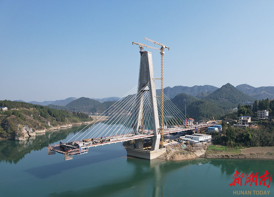 2026年1月1日,保靖县酉水三桥建设工地上,工人进行施工作业。新年第一天,各行各业劳动者坚守岗位,为梦想奋斗,为幸福打拼。 俞采华 摄(湖南图片库)