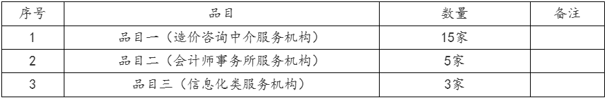 (1)品目一(造价咨询中介服务机构)及品目三(信息化类服务机构):无特定资格要求